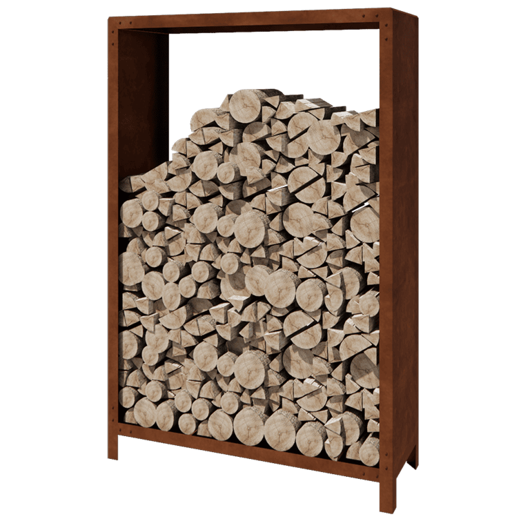 Η αποθήκευση ξύλου είναι κατασκευασμένη από υψηλής ποιότητας χάλυβα Corten. Η διαδικασία οξείδωσης ξεκινά μέσα σε λίγες εβδομάδες έως μήνες, δίνοντας στο προϊόν μια ζεστή πορτοκαλοκάστανη απόχρωση. Η ολοκλήρωση της διαδικασίας οξείδωσης μπορεί να διαρκέσει 1 έως 2 έτη. Η διαδικασία μπορεί να επιταχυνθεί με τον επιταχυντή σκουριάς MySteel. Το στρώμα σκουριάς προστατεύει το μέταλλο από περαιτέρω διάβρωση και δίνει φυσική, ζωντανή εμφάνιση στο προϊόν.