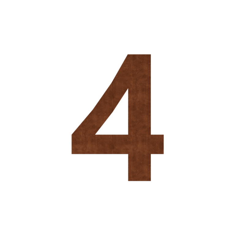 Αυτός ο αριθμός σπιτιού είναι εφοδιασμένος με αποστάτες, οι οποίοι εξασφαλίζουν ότι ο αριθμός σπιτιού τοποθετείται με μικρή απόσταση από τον τοίχο. Οι αποστάτες εξασφαλίζουν ένα καθαρό τελικό αποτέλεσμα, όπου φαίνεται ότι ο αριθμός σπιτιού αιωρείται. Κατά την τοποθέτηση, βιδώνετε τις παρεχόμενες βίδες στο σπείρωμα των αποστατών και στη συνέχεια τις τοποθετείτε σε μια (γεμάτη με σιλικόνη) τρύπα στον τοίχο. Μετά την ξήρανση της σιλικόνης, ο αριθμός σπιτιού παραμένει σταθερός στον τοίχο. Ο αριθμός σπιτιού παραδίδεται χωρίς σκουριά, σε γκρι μεταλλικό χρώμα. Η αρχή της διαδικασίας σκουριάς ξεκινά στους πρώτους 2 μήνες, για αυτό δεν απαιτείται καμία επεξεργασία. Κατά τη διάρκεια της διαδικασίας σκουριάς, ο αριθμός σπιτιού μπορεί να αποχρωματιστεί.