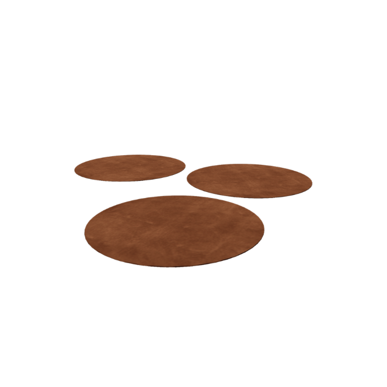 Αυτά τα πλακάκια βημάτων, που ονομάζονται επίσης πέτρες βημάτων, είναι κατασκευασμένα από χάλυβα corten που έχει παραχθεί εσωτερικά. Μπορούν να τοποθετηθούν σχεδόν παντού στον κήπο: σε χαλίκι, στο γκαζόν, ανάμεσα στα φυτά ή σε άλλη τοποθεσία στον κήπο. Τα πλακάκια βημάτων τοποθετούνται στο έδαφος ή στο γκαζόν. Η χλοοκοπτική μηχανή μπορεί να περάσει από πάνω τους.