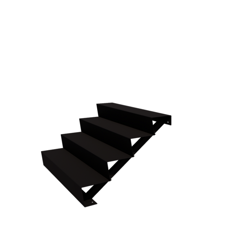 Ανακαλύψτε τη σκάλα κήπου από χάλυβα με τέσσερα σκαλοπάτια και ματ μαύρη επένδυση (RAL9005). Η σκάλα συνδυάζει μοντέρνο σχεδιασμό με ανθεκτικά υλικά, προσφέροντας μια ασφαλή και στιλάτη λύση για να φτάσετε σε ψηλότερα σημεία στον κήπο σας.