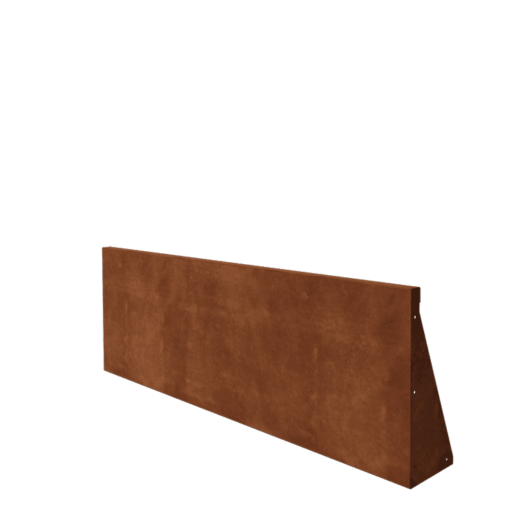 Ο τοίχος συγκράτησης έχει διαστάσεις 150 x 50 cm και κατασκευάζεται από φύλλο χάλυβα Corten πάχους 2 mm, προσφέροντας μια σταθερή και στιβαρή κατασκευή. Παραδίδεται πλήρης με στηρίγματα συναρμολόγησης και υλικό στερέωσης, καθιστώντας εύκολη την τοποθέτηση και σύνδεσή του. Χάρη στην ευρεία βάση του, ο τοίχος παραμένει σταθερός χωρίς να απαιτείται μόνιμη στερέωση στο έδαφος.