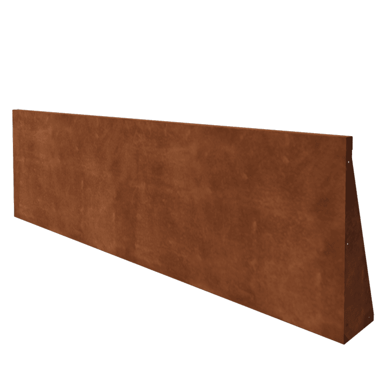 Αυτή η τοίχος συγκράτησης κατασκευάζεται από υψηλής ποιότητας χάλυβα Corten. Το υλικό αυτό αναπτύσσει φυσικά μια προστατευτική στρώση σκουριάς που αποτρέπει περαιτέρω διάβρωση και χαρίζει στο χάλυβα μια ζεστή πορτοκαλο-καφέ απόχρωση. Η διαδικασία σκουριάς αρχίζει σε λίγες εβδομάδες έως μήνες, σχηματίζοντας την ορατή ζεστή πορτοκαλο-καφέ απόχρωση. Η ολοκλήρωση της διαδικασίας μπορεί να διαρκέσει 1 έως 2 χρόνια. Μπορείτε να επιταχύνετε τη διαδικασία με τον επιταχυντή σκουριάς MySteel.