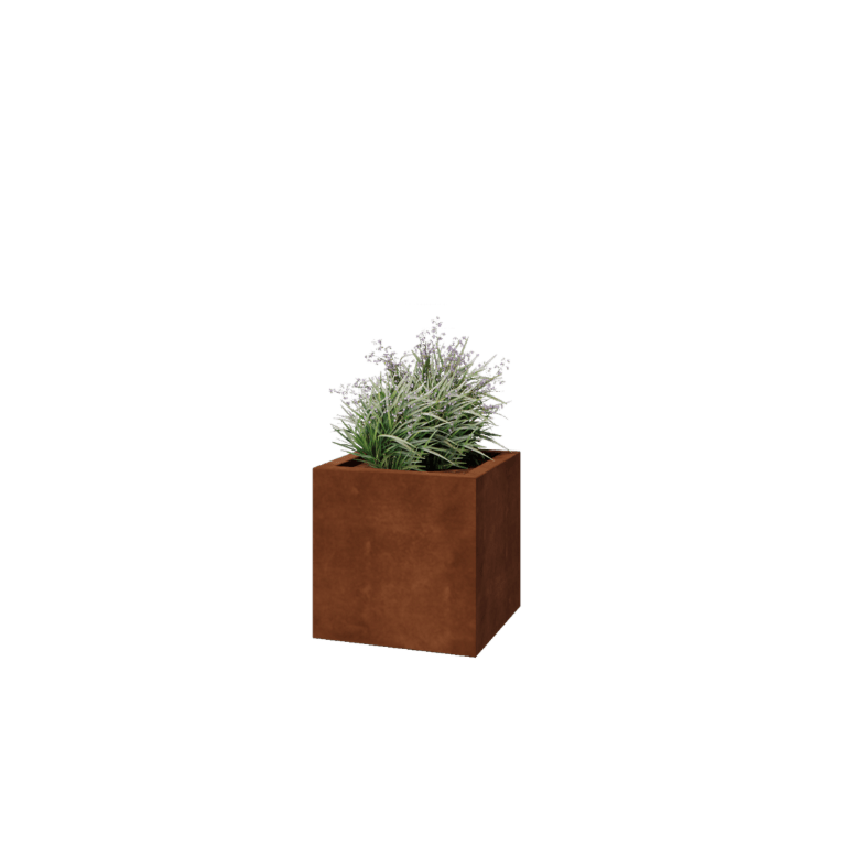 Ζαρντινιέρα από χάλυβα Corten - Τετράγωνο - 50 x 50 x 50 cm - Συγκολλημένο - Με πλάκα βάσης